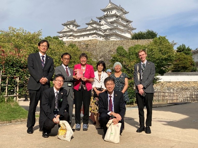 姫路城は、ウェールズのコンウィ城と姉妹城で、姫路市は2021年に、2050年までに二酸化炭素の実質排出ゼロを目指す「ゼロカーボンシティ」を宣言しています。姫路市の観光経済局長はじめ職員の方々と懇談をしました。